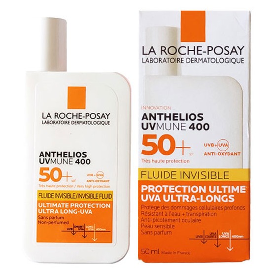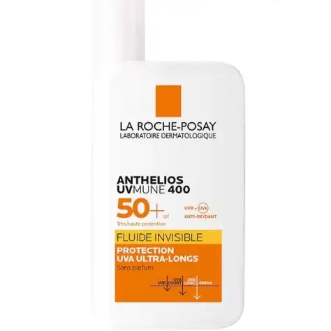 ضد آفتاب فلوئیدی LA ROCHE-POSAY ANTHELIOS UVMUNE 400 دارای فیلترهای انحصاری MEXORYL400 به همراه آنتی اکسیدان های ضد رادیکال آزاد و ضد پیری زودرس پوست و فرمولاسیون فاقد عطر مناسب پوست های حساس می باشد.